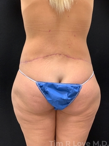 5'2, 120lb, 50 year old post-bariatric surgery patient. She is 3 months post op circumferential body lift with gluteal fat grafting and mastopexy with 345cc shaped highly cohesive implants.