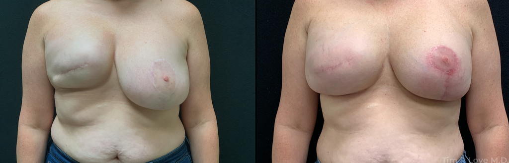 - 1 month post op 2 stage breast reconstruction with shaped implant, revision mastopexy, and fat graft